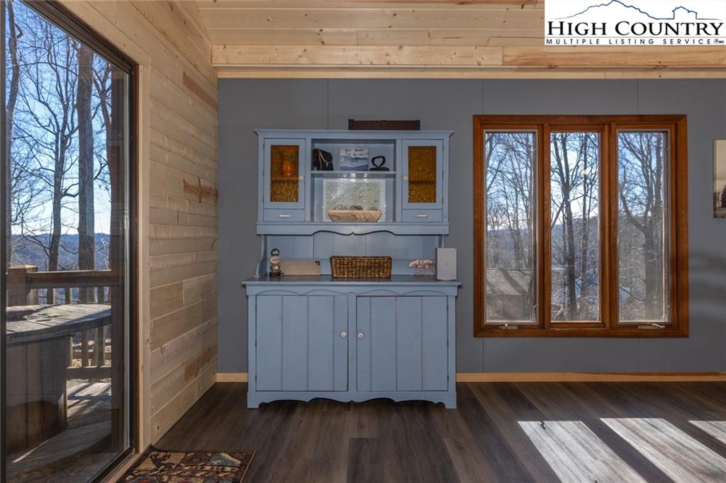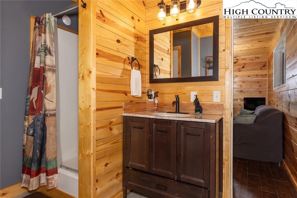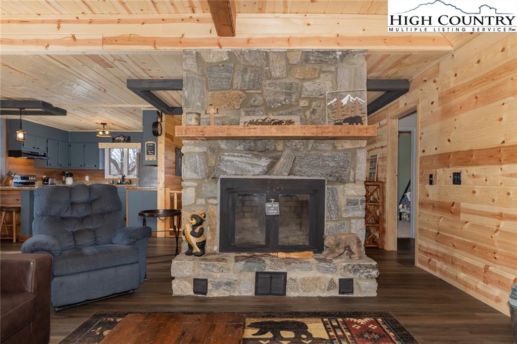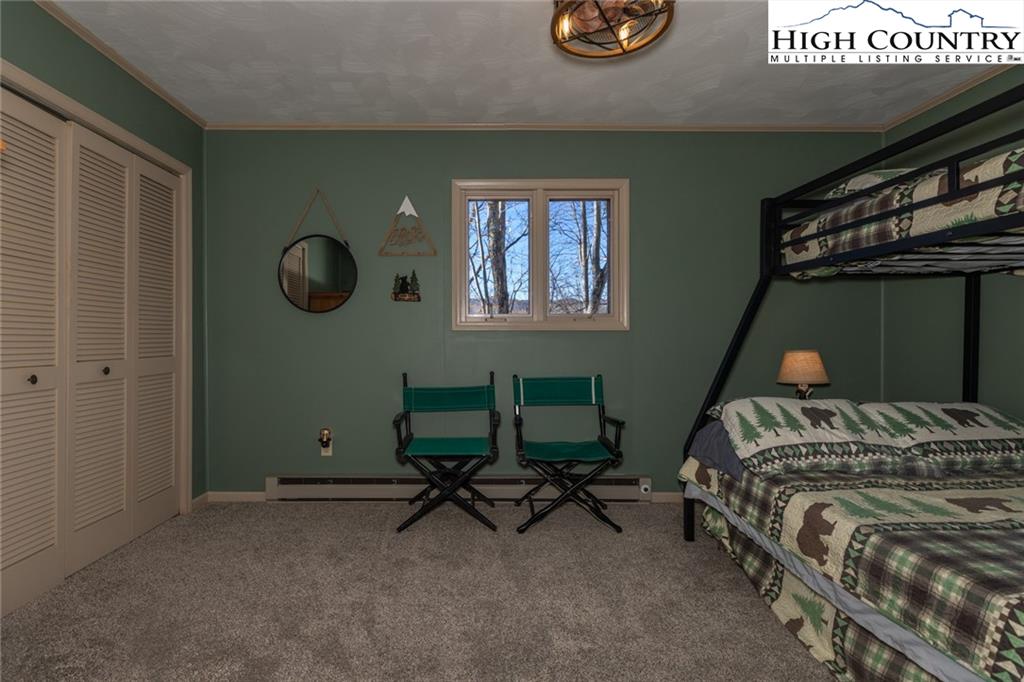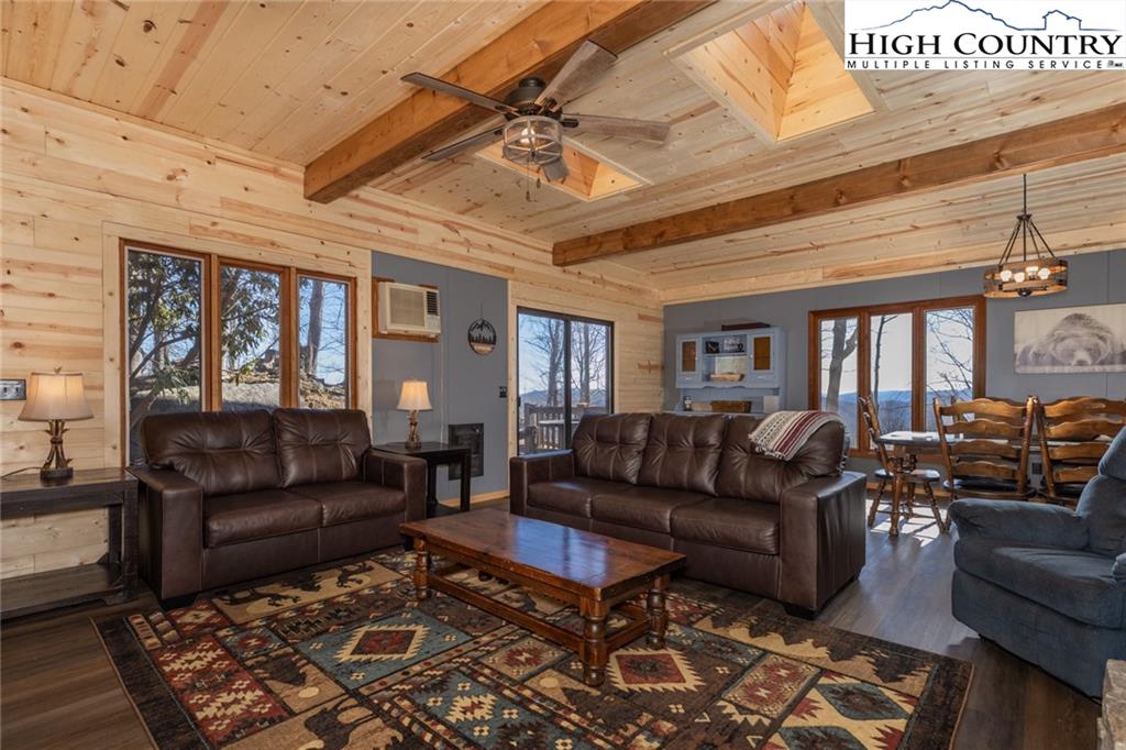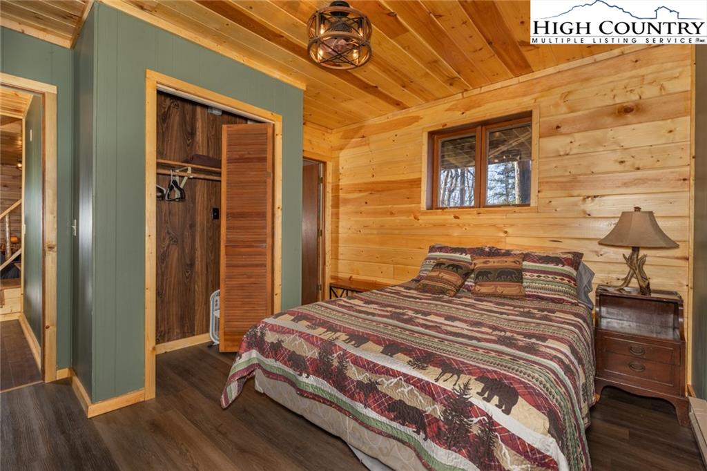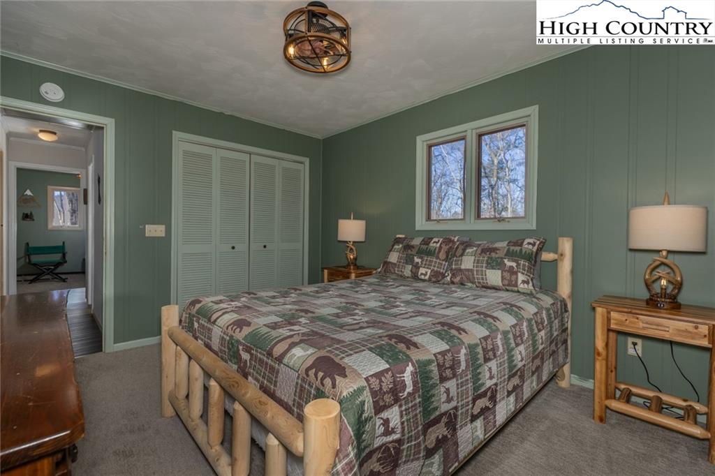 Welcome to this charming 3 bedroom 2 bath house located in the gated community of Powder Horn Mountain. New roof in 2024. Monster view off the back of this one and a, rare to find, attached basement garage. The lower level has a very nice size walk in laundry room as well as a full bedroom and bathroom. There is also a nice den in this lower level that has direct access to the garage. (could be a nice game room for short term rentals which are allowed) LVP flooring and tile on this level and some nice new wood accents throughout. Upper level has 2 full bedrooms one full bath and the kitchen, living room. and dining area. Fully furnished with only a few exceptions. Bring a tooth brush! 2 propane fireplaces one on each level. POA Dues are 1988 per year. Short term rentals allowed. Access to community pool, fitness center, paddle boats, campground, 3 lakes, playground, tennis court, chapel and weekly trash removal! Great opportunity to get a larger house at over 1800 sq ft and make it your own for less than the cost to build new. Internet is now SKYLINE SKYBEST fiber internet. 13 miles to Appalachian state. No septic permit found on this one. Seasonal views and long term views with a little tree cutting!