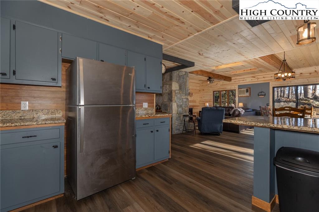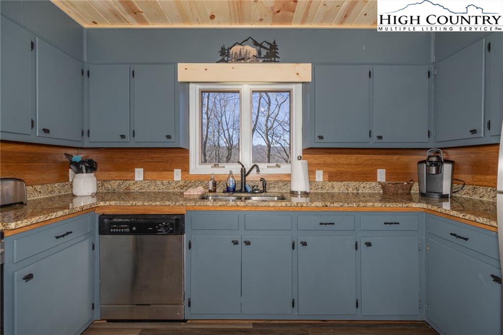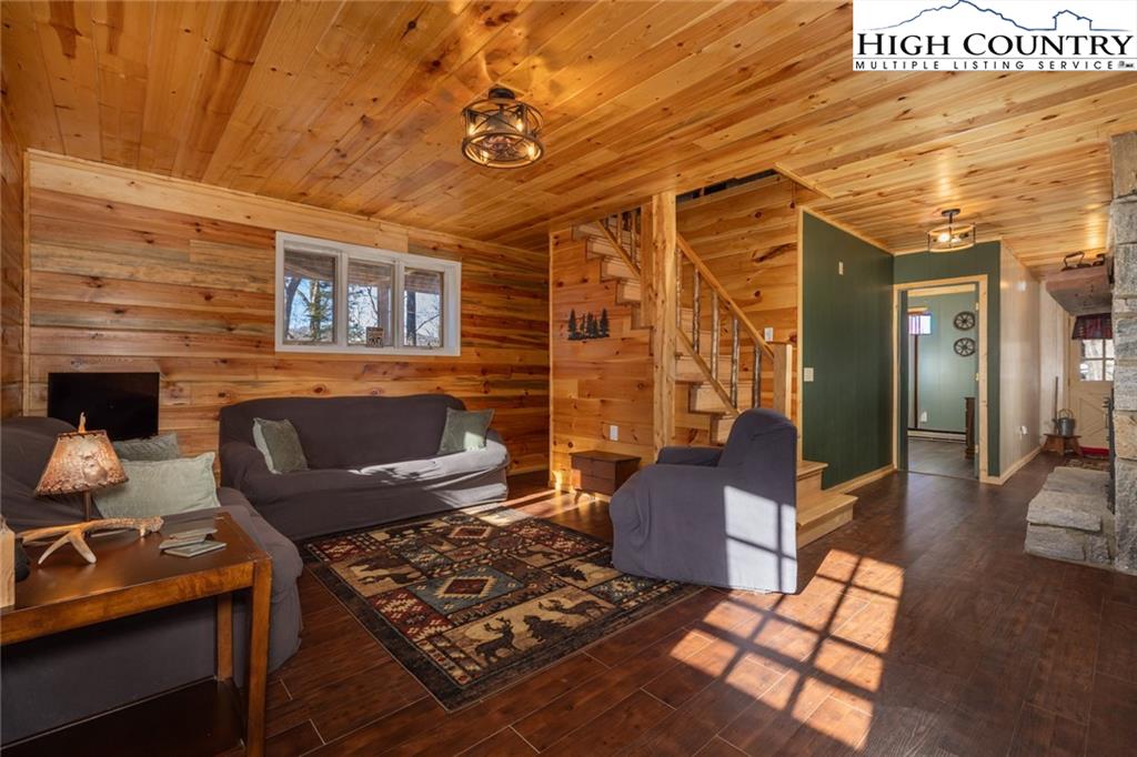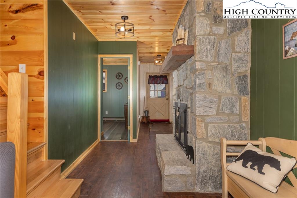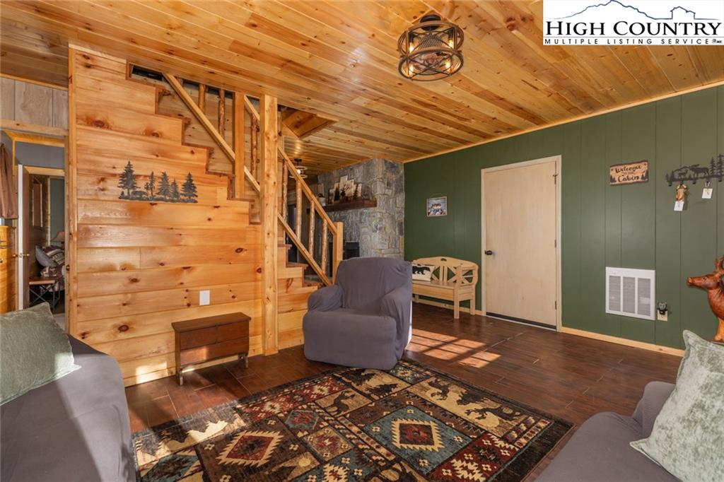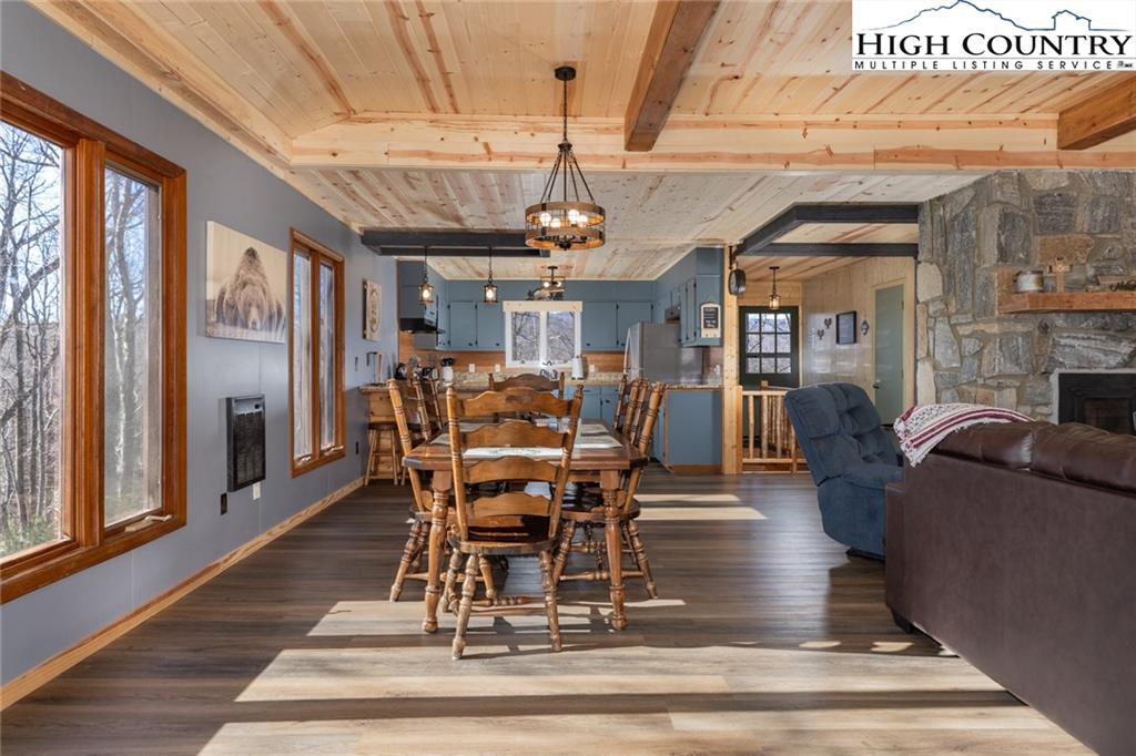 Welcome to this charming 3 bedroom 2 bath house located in the gated community of Powder Horn Mountain. New roof in 2024. Monster view off the back of this one and a, rare to find, attached basement garage. The lower level has a very nice size walk in laundry room as well as a full bedroom and bathroom. There is also a nice den in this lower level that has direct access to the garage. (could be a nice game room for short term rentals which are allowed) LVP flooring and tile on this level and some nice new wood accents throughout. Upper level has 2 full bedrooms one full bath and the kitchen, living room. and dining area. Fully furnished with only a few exceptions. Bring a tooth brush! 2 propane fireplaces one on each level. POA Dues are 1988 per year. Short term rentals allowed. Access to community pool, fitness center, paddle boats, campground, 3 lakes, playground, tennis court, chapel and weekly trash removal! Great opportunity to get a larger house at over 1800 sq ft and make it your own for less than the cost to build new. Internet is now SKYLINE SKYBEST fiber internet. 13 miles to Appalachian state. No septic permit found on this one. Seasonal views and long term views with a little tree cutting!