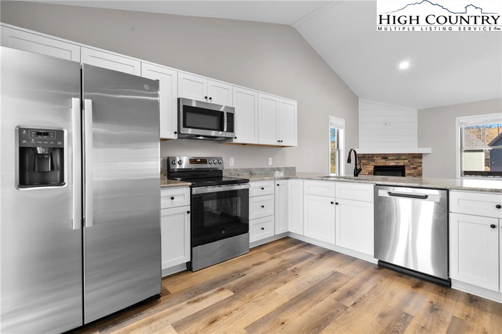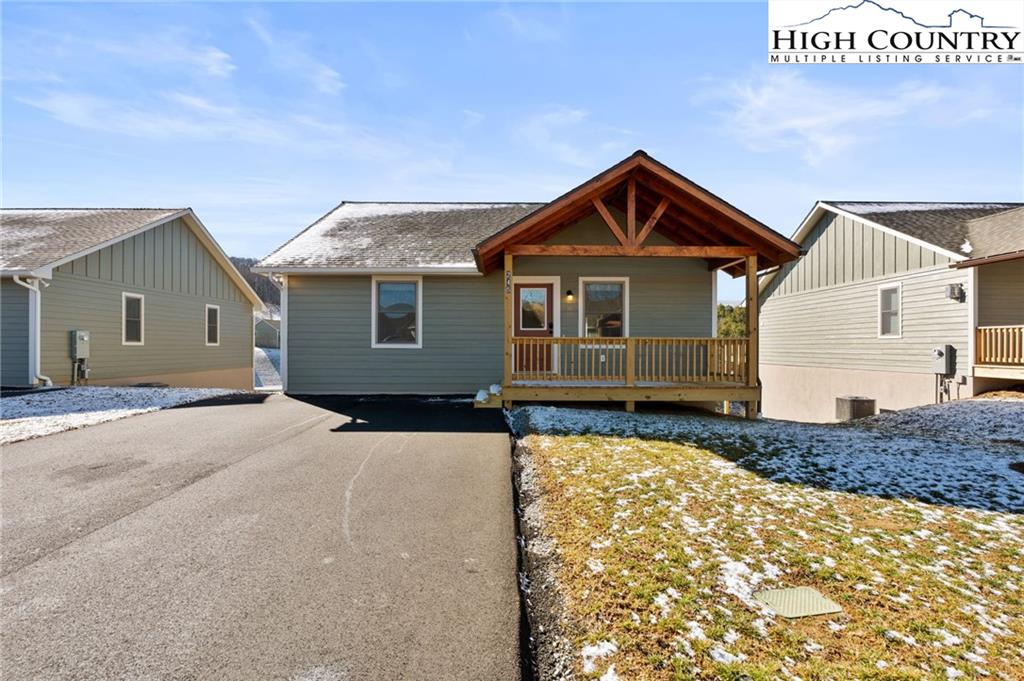 Move-in Ready Townhome with Mountain Views in Prime Boone Location at Townhomes at Brookshire, where convenience meets serene mountain living. This pristine, freestanding, and newly constructed townhouse offers the rare chance for a desirable one-level lifestyle in the highly sought-after Boone area. It is READY TO MOVE IN! The thoughtful design throughout this two-bedroom, two-and-a-half-bath home. The open-concept kitchen and living area is the heart of the home, featuring a cozy stone-faced gas fireplace—perfect for cool mountain evenings. The kitchen boasts stainless steel appliances, granite countertops, a large eat-at bar, and a walk-in pantry. For ultimate privacy, the layout includes two oversized bedrooms, each with its own en-suite bathroom. Additional features include a walk-in laundry room and encapsulated crawlspace with plenty of storage. Enjoy the tranquil setting from your outdoor spaces, including a charming, open-framed porch that delivers classic mountain appeal and rear deck with picturesque mountain views of Howards Knob. The location is truly unbeatable—just minutes from everything Boone has to offer. You are a short walk or drive to local amenities like Brookshire Park, the New River, a stocked trout stream, the Boone Greenway, and community dog park. With quality new construction and exceptional proximity to all of Boone's best amenities, this property is home.