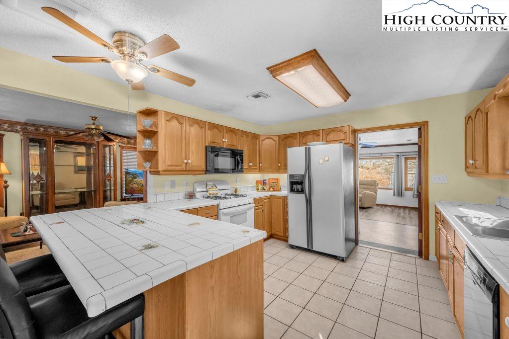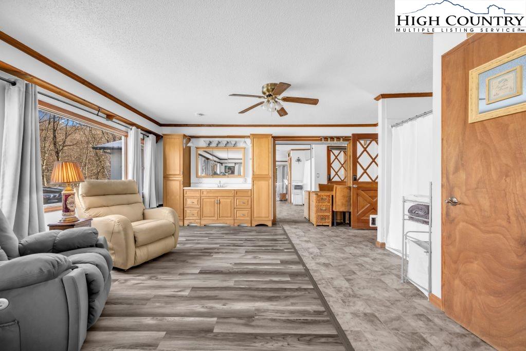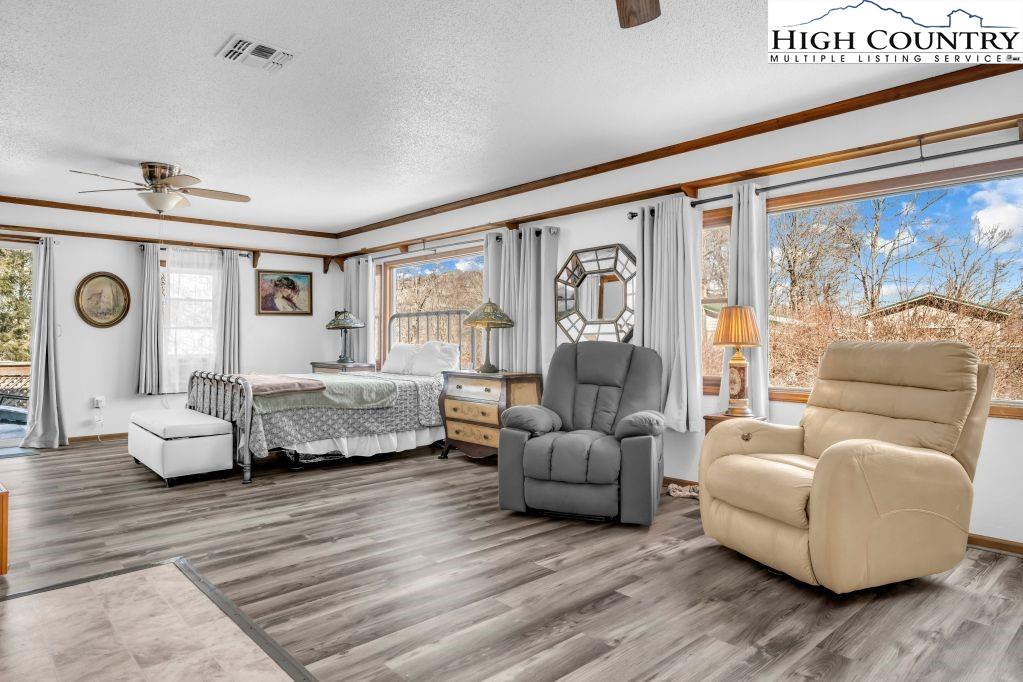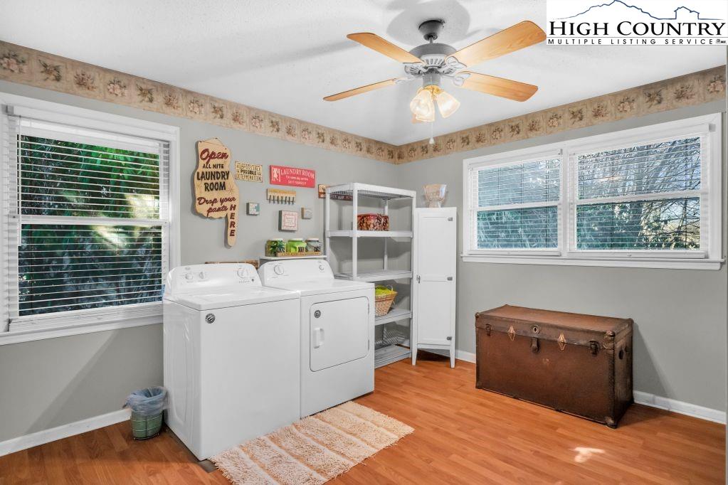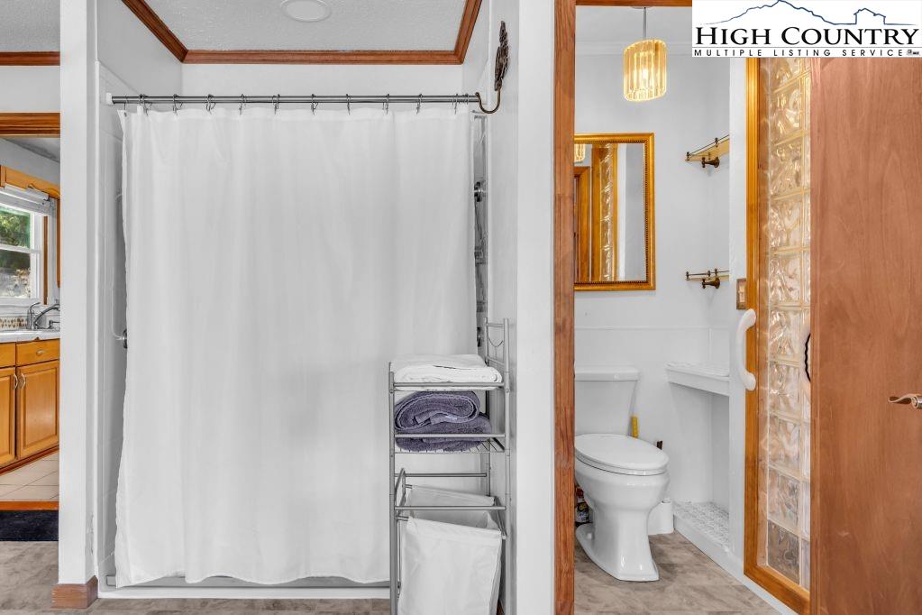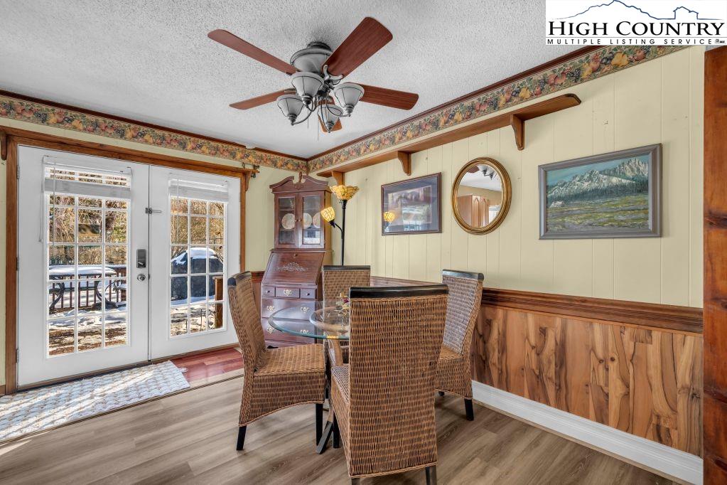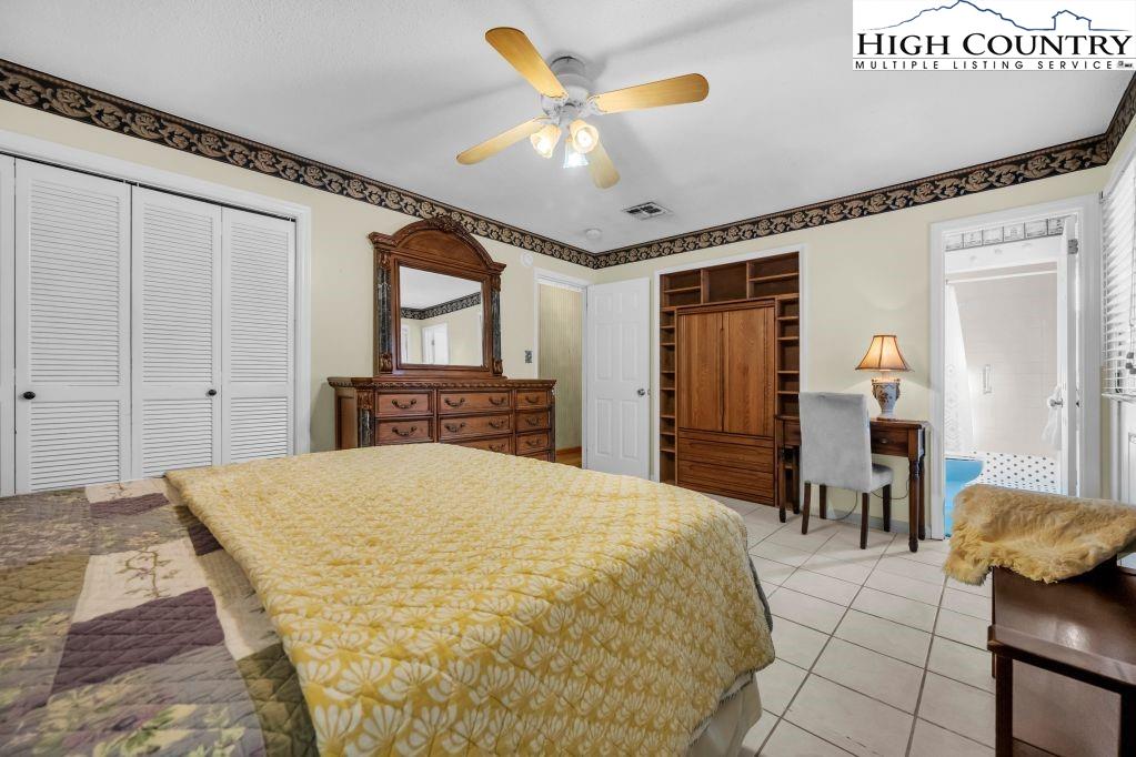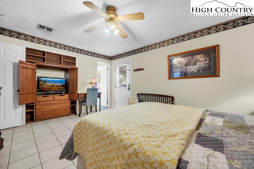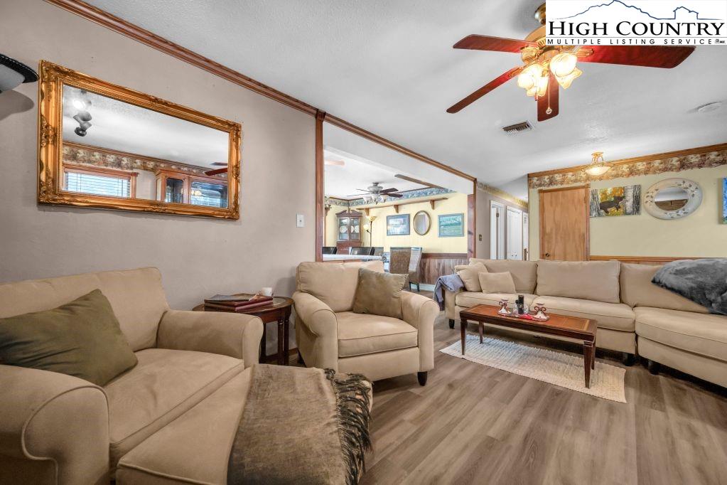 Less than five minutes from downtown Banner Elk, Lees-McRae College and Sugar Mountain, this single-level ranch residence offers location, flexibility and privacy on a park-like, flat 1.57-acre setting. While officially listed as a three-bedroom home, the layout provides four distinct sleeping areas, including a versatile guest suite off the kitchen with its stone fireplace, full bath, walk-in closet, private deck and abundant natural light, ideal as a second primary suite, in-law space or bonus living area. The open kitchen and dining area flow into the main living room, which features a second stone fireplace crafted from Grandfather Mountain stone. French doors lead to a large rear deck overlooking the fenced backyard, garden space and wooded edge. The same Grandfather Mountain stone is used on the exterior, adding timeless character and regional significance. One bedroom is used as a laundry room and can be easily converted back. The unfinished basement offers a second laundry area, abundant storage and space for a gym, studio or workshop. Outdoor living is unmatched, with a covered front porch, expansive back deck, stone path to a creekside platform beneath a mature shade tree, and ample room for gardening or small livestock. A heated, detached two-car garage with workshop or office is connected by a covered breezeway. Additional features include accessible design elements and a high-efficiency HVAC system with advanced air filtration. A rare opportunity combining convenience, unrestricted usable land and flexible living space, minutes from everything Banner Elk and the High Country have to offer.