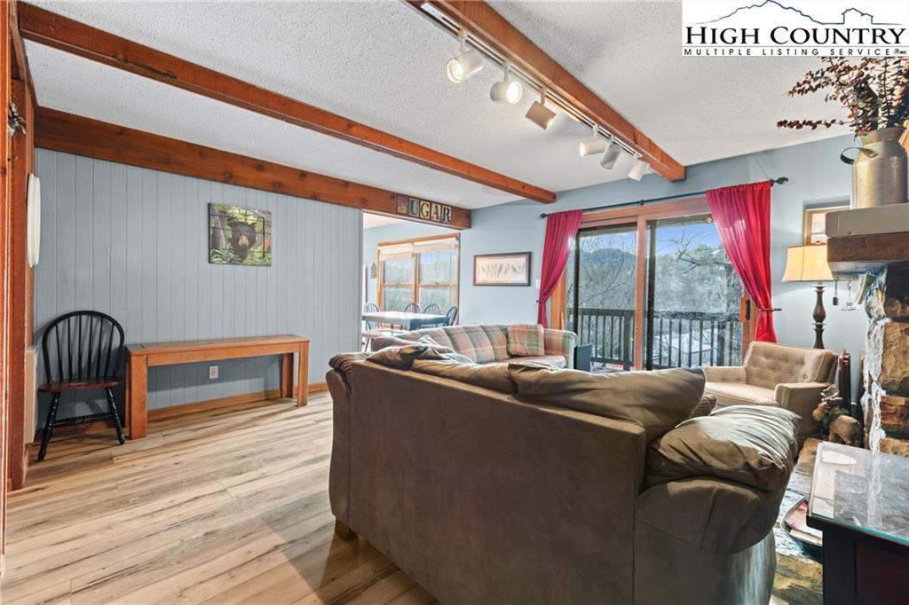 TURNKEY, SLOPESIDE condo overlooking Easy Street ski run and lift. This 3 bedroom/2 bath Bee Branch unit comes fully furnished with several updates including a new water heater (late-2024), washer/dryer stacker unit (early-2023), LVP flooring throughout, refreshed bathrooms, new lighting fixtures in most rooms, smart thermostats, and USB outlets. Stash your skis in your own personal equipment closet and cozy up to the stone fireplace after a day on the slopes. During the warmer months, enjoy the cool mountain breezes off the back deck. The slopes and base lodge are conveniently accessed via a foot bridge right behind building 3. You can't beat this location, only a short distance from the Sugar Mtn tennis courts, golf course, skating rink, and tubing run! Easy driving access to surrounding towns and amenities: Banner Elk (<10 minutes), Boone (25 min.), Blowing Rock (30 min.). Short-term rentals for the ski season are managed by Vacasa. New roof and gutters added in 2025. Retaining wall also replaced in 2025 after Helene via reserves. Parking lot repaving planned for 2026. The POA contact is Property Management & Maintenance Services, Inc (Kennie Boling, 828-898-6321). Buyers obtaining a loan may be assessed a $125 condo questionnaire & lender info fee by the POA. Propane for the gas logs is provided by Freeman Propane and managed and billed several times annually by the POA.