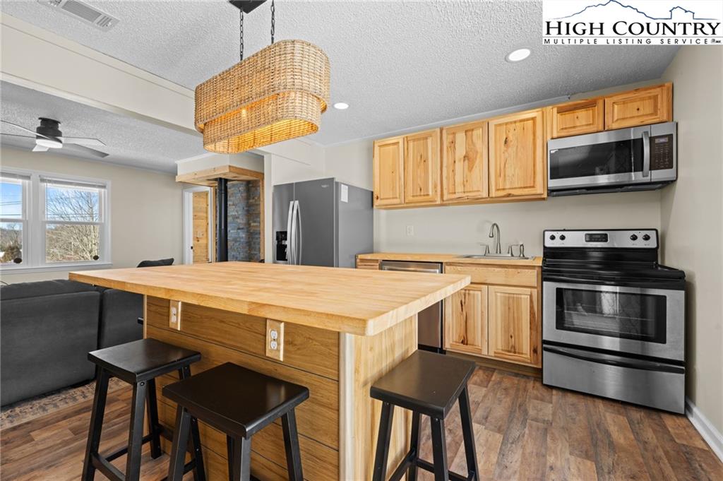 BANNER ELK PRIME LOCATION + VIEWS + CREEK & over 1/2 ACRE of LAND! Welcome HOME to "Sugar View Cottage" nestled in the very heart of Banner Elk! Don't wait to see this nicely renovated 3 BEDROOM - 2 BATH ranch-style home perfectly situated on over a 1/2 acre of land! Imagine relaxing on the front porch while listening to the sounds of the flowing creek which borders the property as well as views of the Sugar Mountain ski slopes & pond! Step inside to a bright, open layout filled with natural light and tasteful modern updates throughout. The home features central A/C and heat, a brand-new roof and a thoughtfully designed floor plan that makes everyday living easy. Whether you're relaxing in the living area, cooking in the updated kitchen or unwinding in one of the spacious bedrooms, every space feels warm and inviting. Outside, the large fenced-in yard offers endless possibilities — a dream space for children to play, pets to roam freely or friends to gather around a fire pit to stargaze! The paved road access makes year-round living simple, while the location puts you just five minutes from downtown Banner Elk, top restaurants, shopping and Sugar Mountain skiing. With one of the most desirable locations in the High Country, the ski slope views, all the amenities & modern upgrades this home truly has it all — and opportunities like this are truly rare and are not to be missed