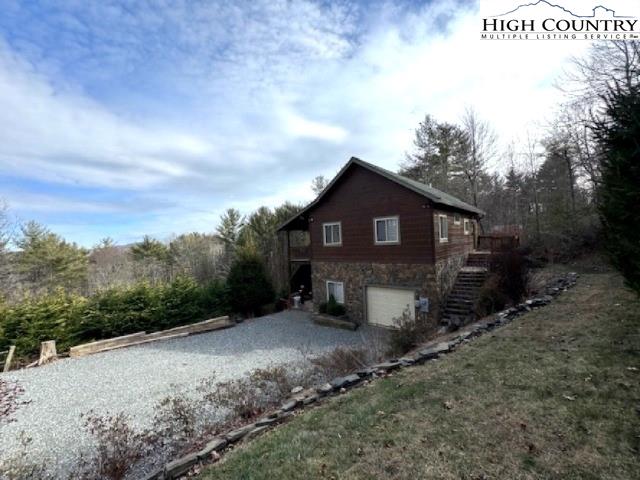 A fabulous cabin in the mountains with a view to match. Home features 3 bedroom 2 full baths, vaulted ceilings, knotty pine flooring and walls, solid wood doors, T&G ceilings, marble counter tops. New central air unit and a wood burning stove for backup heat along with a newly remodeled main level bath. Lower level has 10' ceilings, tile floors and was thoughtfully designed. Outside boasts a brand-new hot tub, wonderful firepit area, spacious and partially fenced yard below, as well as a garden shed and storage shed. Conveniently located between West Jefferson and Deep Gap for ease of commuting. 5 minutes from Rail Road Grade Road, Todd and the New River for tubing, kayaking, fishing and minutes away from Elk Mountain overlook, Todd Island Park, and many other hiking, biking, and exploring opportunities. Home could work as a first home, second home or long term or short-term rental. Home is being sold furnished minus a few owner exceptions. New survey just completed.