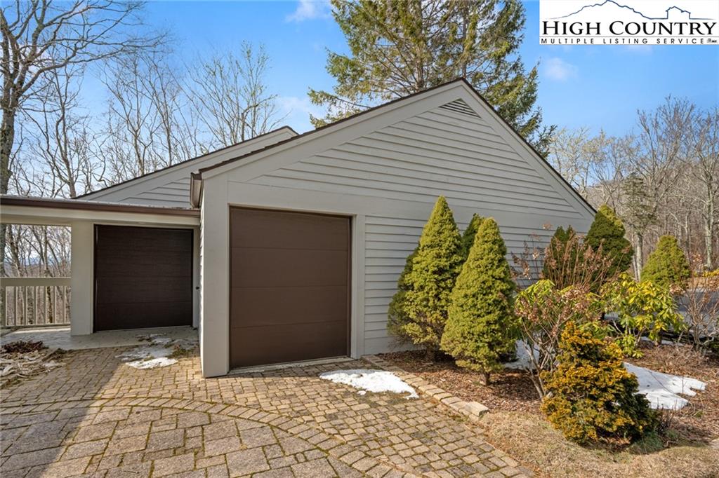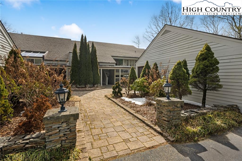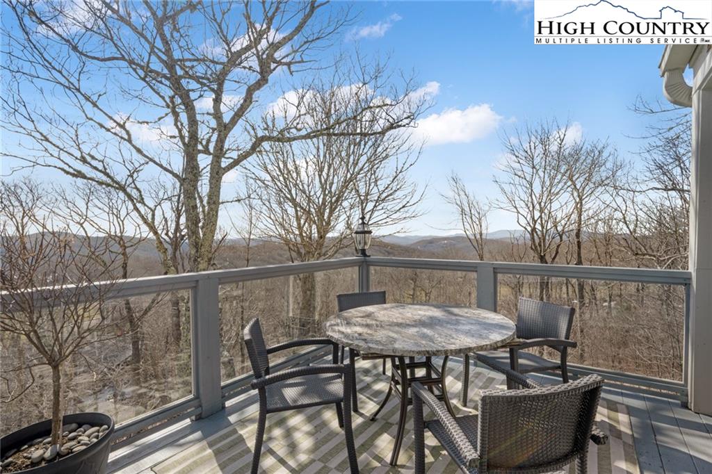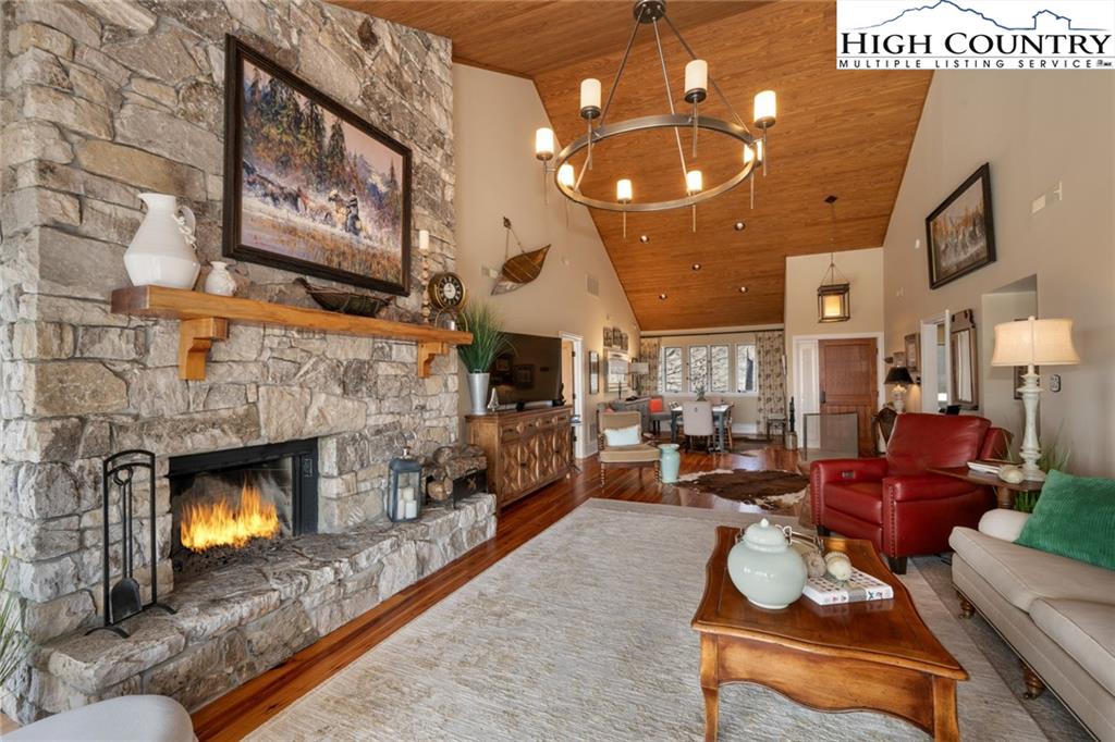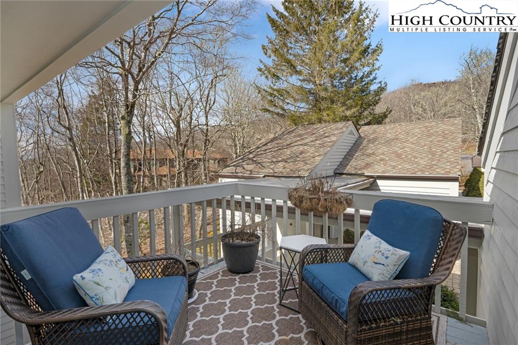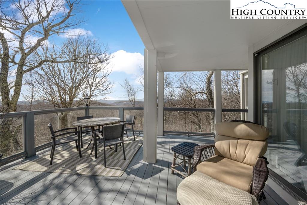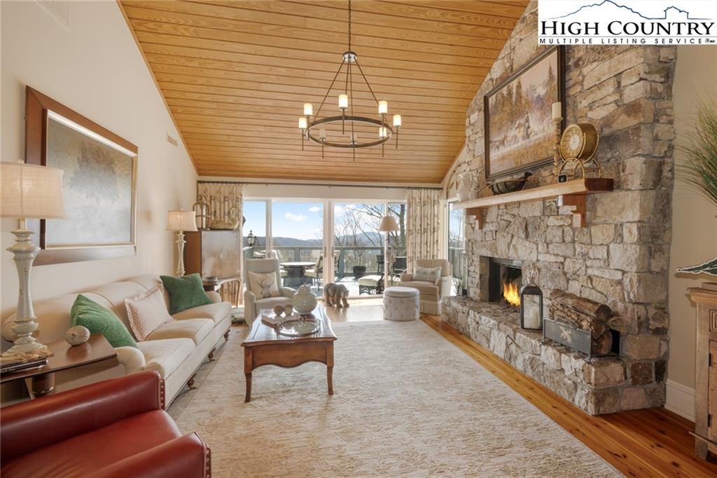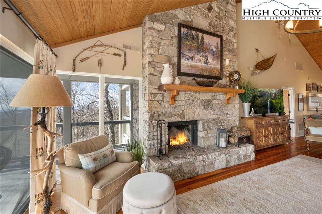 A rare opportunity to purchase an upper Brookhill condo at Linville Ridge with stunning mountain views! This elegant 2-bedroom, 2-bath condo is an absolute pleasure to be in. A soaring tongue & groove wood ceiling, stately stone fireplace, beautiful pine flooring, and an abundance of natural light are the stars of the main living area. And of course, that view...A breathtaking long-range mountain view makes spending time on the welcoming deck an absolute joy! You'll feel like you are in a mountain treehouse with golf and mountain views all around. This favorite floor plan features nice separation between bedrooms on each side of the unit, and both bedrooms have direct access to the rear deck. The bathrooms are fresh and updated, with the primary en-suite bath featuring dual vanities, a soaking tub, and a large tiled shower. The clean and functional kitchen offers plenty of storage and a breakfast nook, as well as a pantry closet and access to the large laundry/storage room. A smaller deck off the kitchen/entry is the perfect spot to enjoy your morning coffee. The detached one-car garage is a wonderful amenity for parking, storing sporting gear, or a golf cart. Enjoy cool mountain summers at over 4000 ft elevation, or cozy colder months by the fire. Whether you are looking for a seasonal home for enjoying the mountains and the club facilities, or a year-round property, this property checks so many boxes! The condo is being sold furnished with some seller exceptions. This is easy and refined mountain living at one of the most sought-after golf communities in the area. It's all here; do not miss this gem of a property!