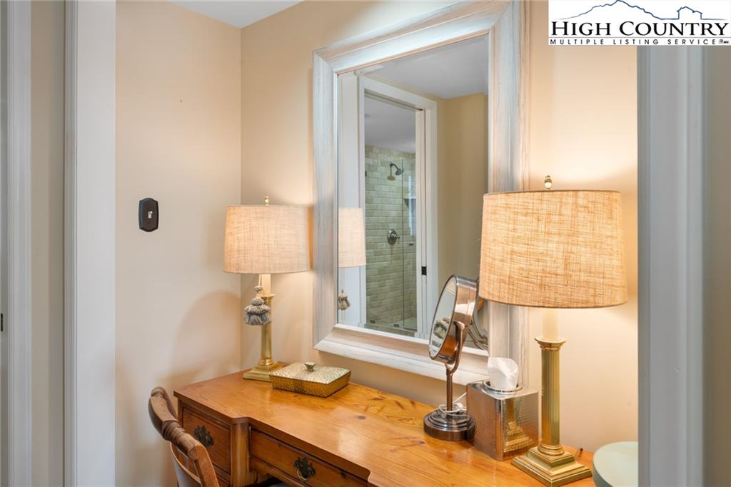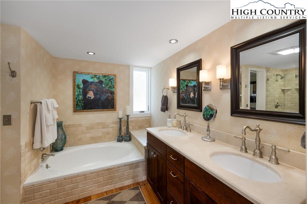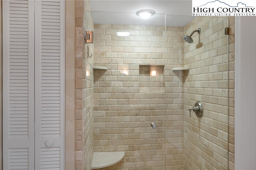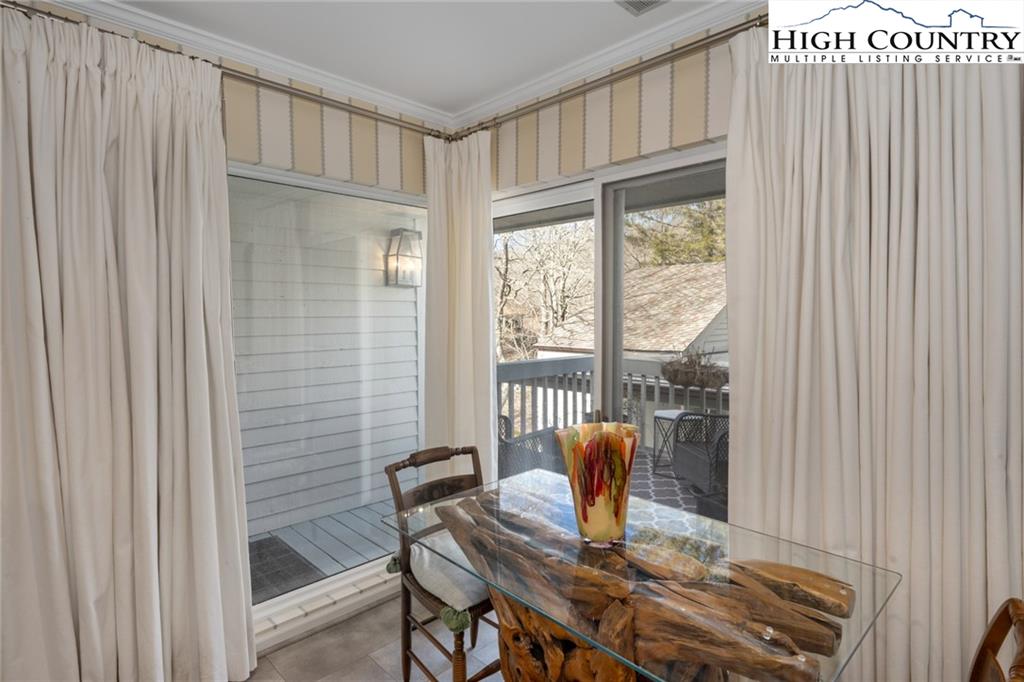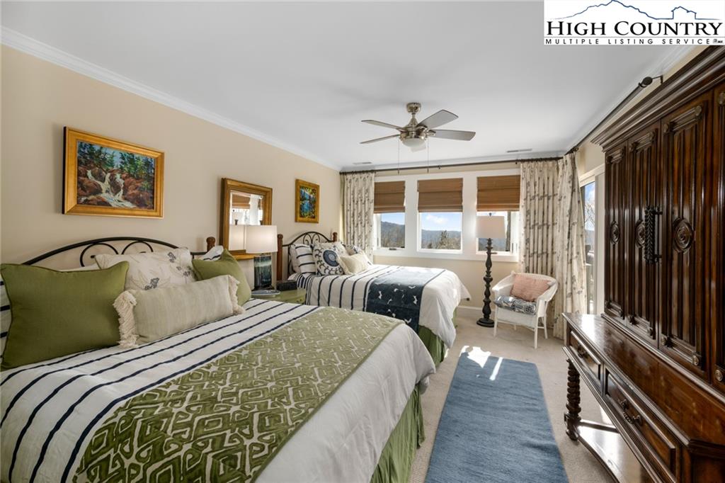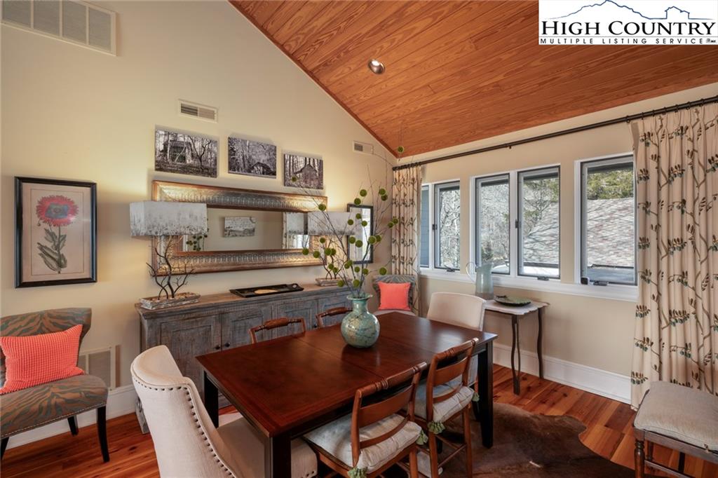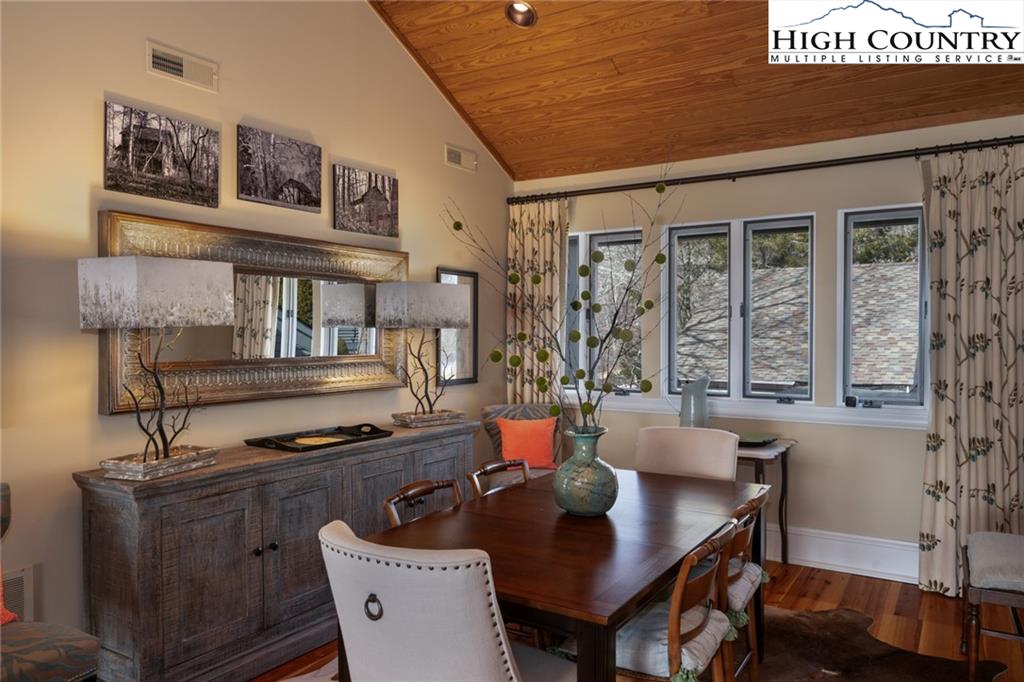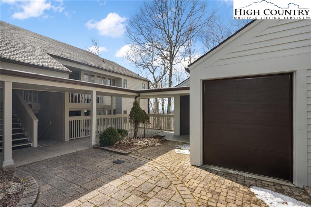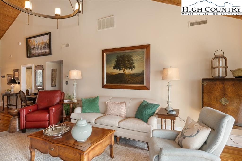 A rare opportunity to purchase an upper Brookhill condo at Linville Ridge with stunning mountain views! This elegant 2-bedroom, 2-bath condo is an absolute pleasure to be in. A soaring tongue & groove wood ceiling, stately stone fireplace, beautiful pine flooring, and an abundance of natural light are the stars of the main living area. And of course, that view...A breathtaking long-range mountain view makes spending time on the welcoming deck an absolute joy! You'll feel like you are in a mountain treehouse with golf and mountain views all around. This favorite floor plan features nice separation between bedrooms on each side of the unit, and both bedrooms have direct access to the rear deck. The bathrooms are fresh and updated, with the primary en-suite bath featuring dual vanities, a soaking tub, and a large tiled shower. The clean and functional kitchen offers plenty of storage and a breakfast nook, as well as a pantry closet and access to the large laundry/storage room. A smaller deck off the kitchen/entry is the perfect spot to enjoy your morning coffee. The detached one-car garage is a wonderful amenity for parking, storing sporting gear, or a golf cart. Enjoy cool mountain summers at over 4000 ft elevation, or cozy colder months by the fire. Whether you are looking for a seasonal home for enjoying the mountains and the club facilities, or a year-round property, this property checks so many boxes! The condo is being sold furnished with some seller exceptions. This is easy and refined mountain living at one of the most sought-after golf communities in the area. It's all here; do not miss this gem of a property!