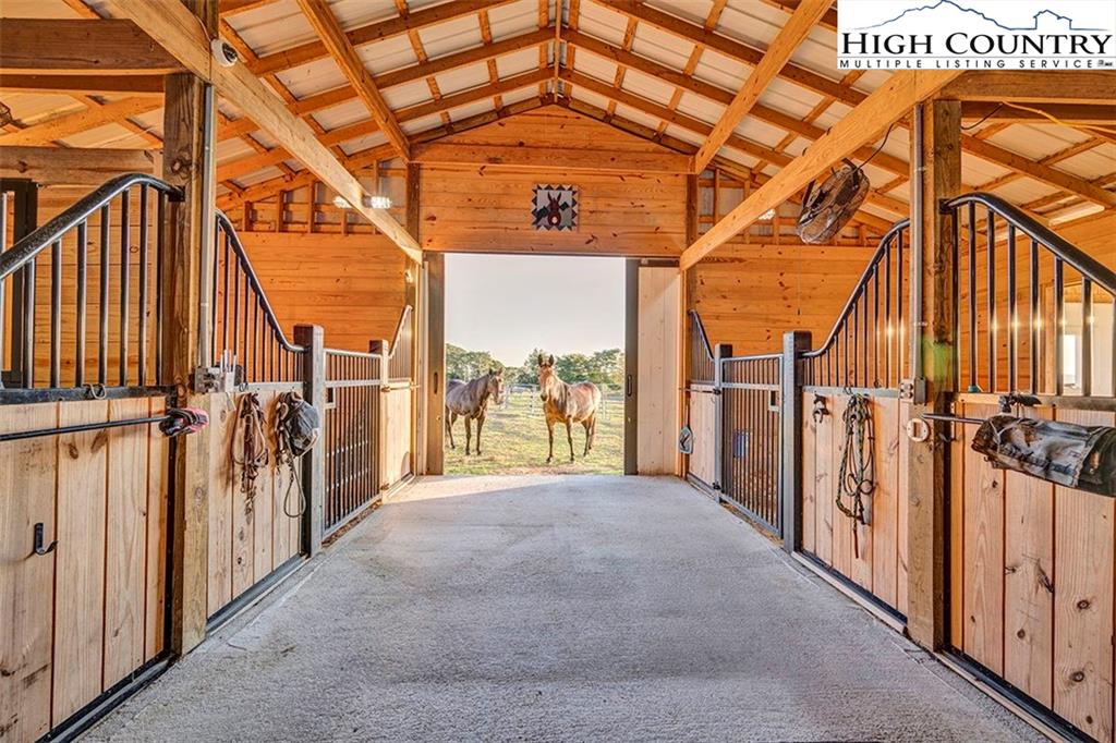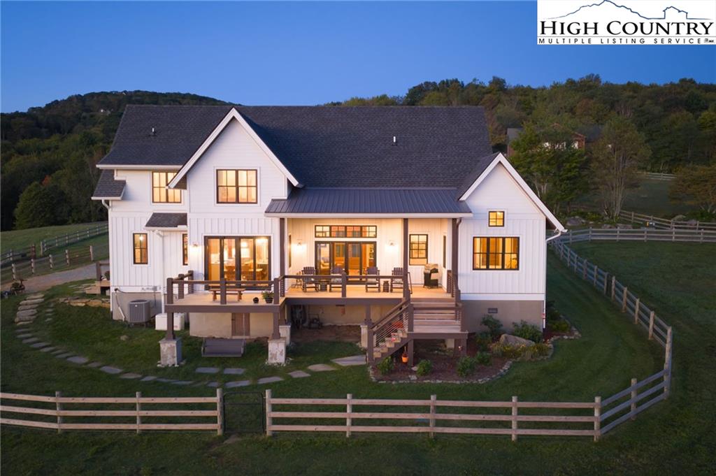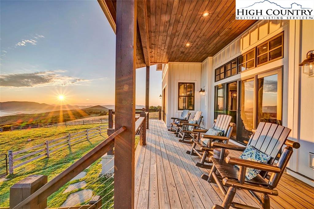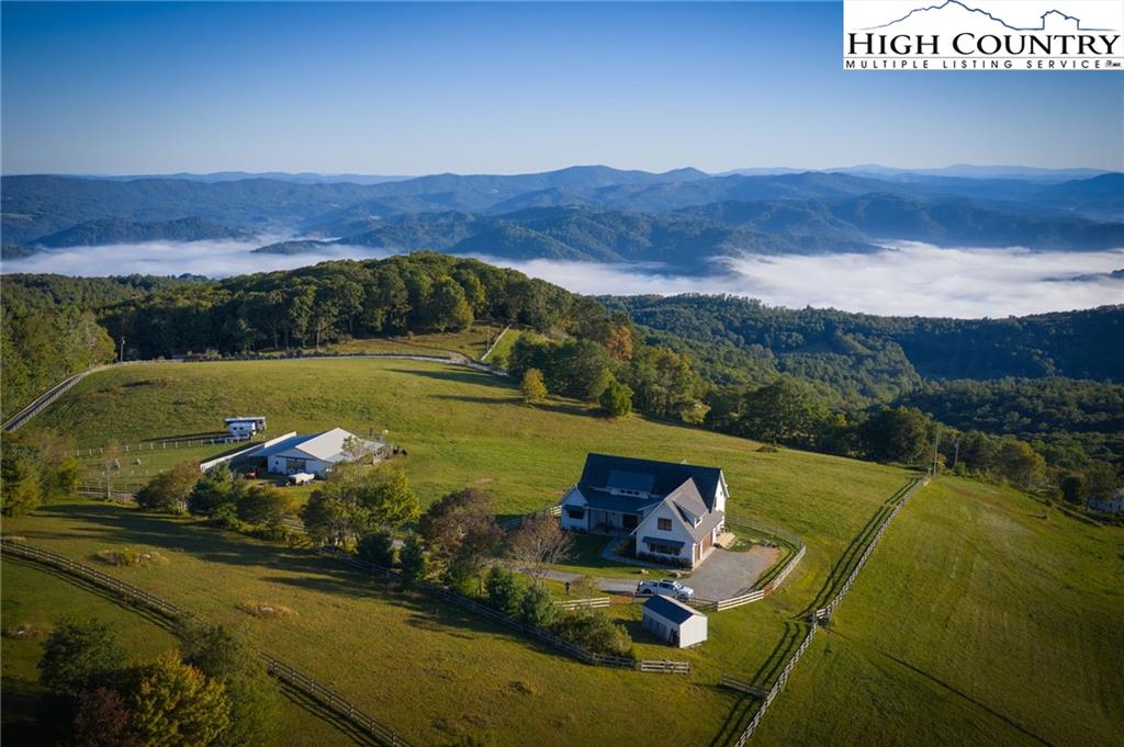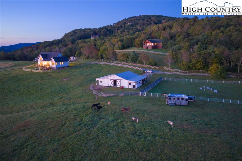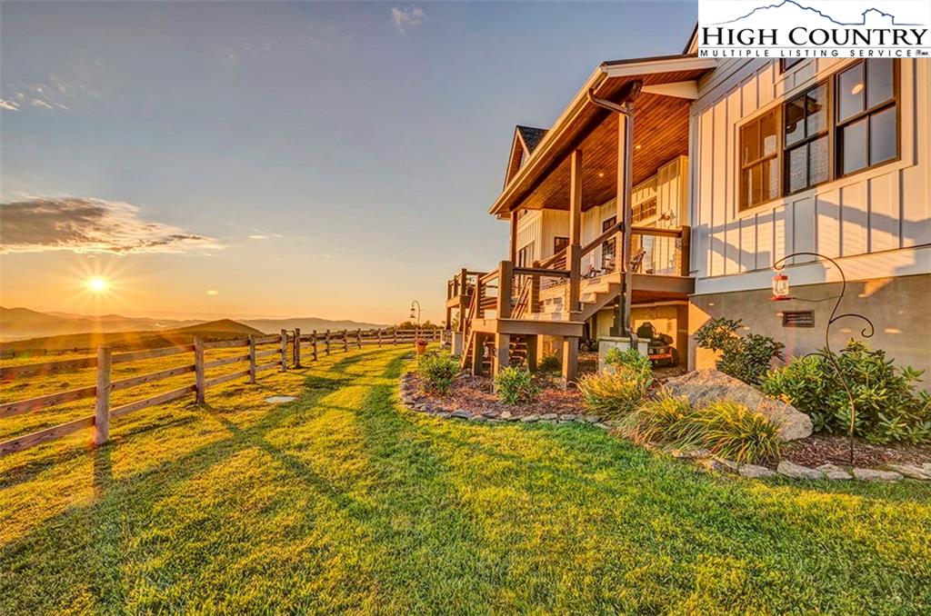 Sorrel Sky Farm lives up to its name. Set at approximately 4,350 feet in elevation, this exceptional equestrian estate captures panoramic views across three states, North Carolina, Virginia and Tennessee, with long-range vistas stretching toward Grandfather Mountain and Mount Rogers. The setting offers privacy and accessibility, just 10 minutes to Banner Elk, 15 minutes to Sugar Mountain, 20 minutes to Beech Mountain, 25 minutes to Boone and 35 minutes to Blowing Rock. Serious equestrians or hobby farmers will recognize the rarity of a high-elevation farm that provides natural cooling, functional infrastructure, and sweeping mountain vistas. Great seasonal escapes or full-time living. With privacy, open pasture, and generous living space, Sorrel Sky Farm also lends itself beautifully to a legacy estate or family retreat. The custom-designed modern farmhouse was thoughtfully positioned to maximize the views, with nearly every room overlooking mountains and rolling board-fenced pastures. Reclaimed hemlock floors and solid hemlock interior doors create warmth and authenticity throughout the main living areas. Mahogany and glass double entry doors, along with expansive sliding glass doors, open the great room and dining area to the covered porch, inviting fresh mountain breezes and seamless indoor-outdoor living. The kitchen anchors the home with a substantial quartz island accented by barn tin detailing, exposed wood beams, and carefully curated finishes. The main-level primary suite features two spacious walk-in closets with custom wood shelving. Upstairs, a generous bonus/family room offers flexible space for recreation, media or additional gathering areas. Designed for comfort and efficiency, the home includes a whole-house generator, water filtration system, encapsulated crawl space, and Icynene insulation. Equestrian facilities are equally impressive. The 60-by-48-foot hardboard-sided barn with metal roof includes seven stalls, a concrete center aisle, insulated tack and feed rooms, hot and cold wash area, 12-by-24-foot equipment storage, and four stalls opening to a 12-by-48-foot lean-to. A separate 12-by-20-foot run-in shed with storage complements two interconnecting three-board fenced pastures across 10 acres, with ample trailer parking. Sorrel Sky Farm offers a rare combination of elevation, views, usable pastureland and proximity to the High Country’s premier destinations, an exceptional opportunity to experience Blue Ridge Mountains at their finest.