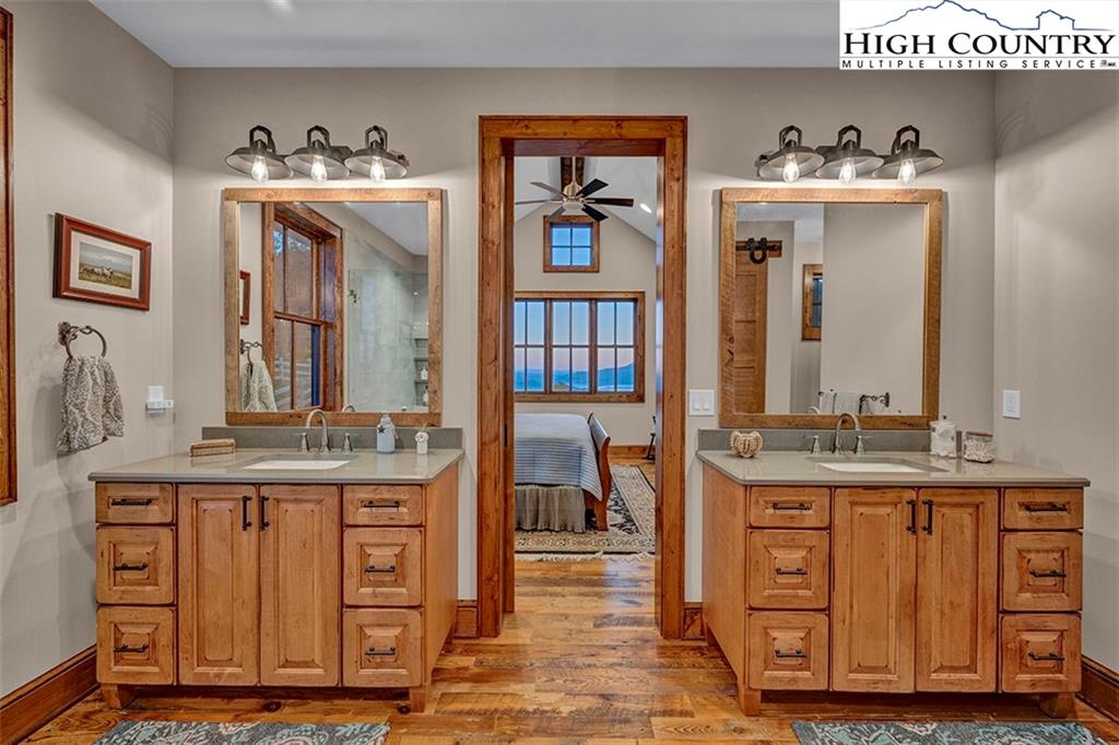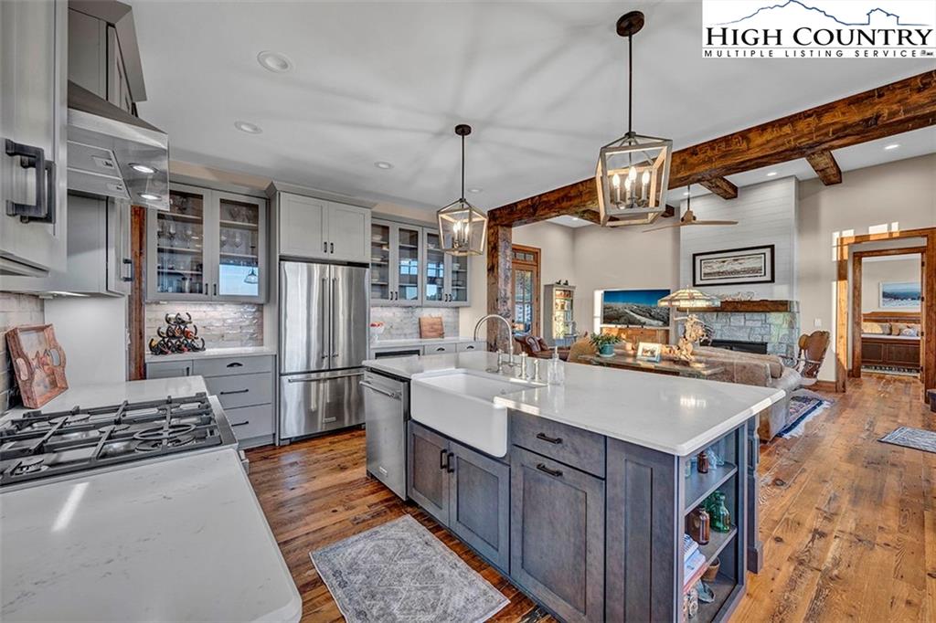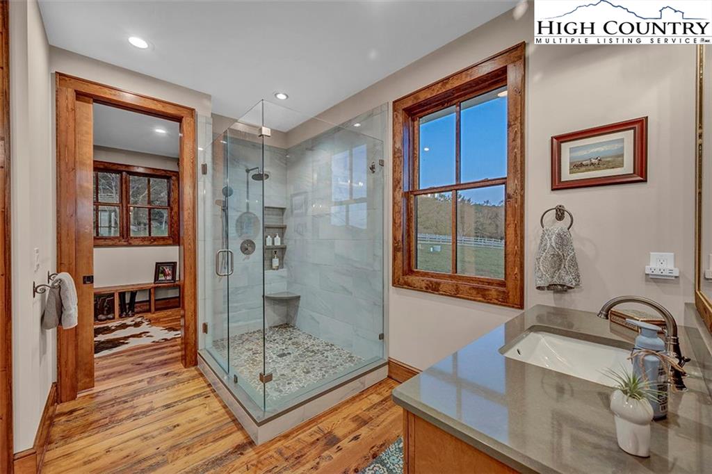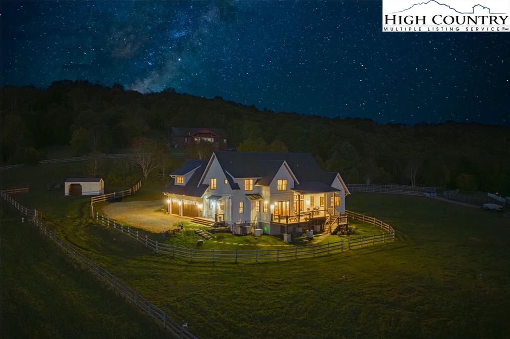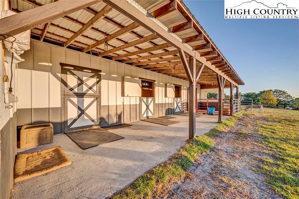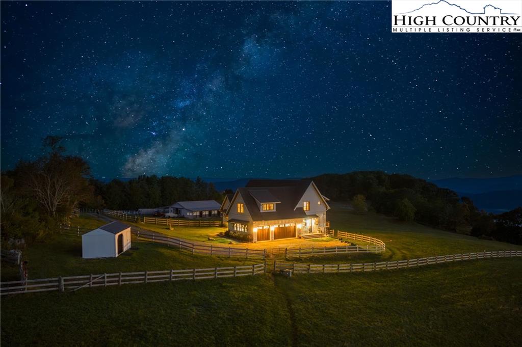Sorrel Sky Farm lives up to its name. Set at approximately 4,350 feet in elevation, this exceptional equestrian estate captures panoramic views across three states, North Carolina, Virginia and Tennessee, with long-range vistas stretching toward Grandfather Mountain and Mount Rogers. The setting offers privacy and accessibility, just 10 minutes to Banner Elk, 15 minutes to Sugar Mountain, 20 minutes to Beech Mountain, 25 minutes to Boone and 35 minutes to Blowing Rock. Serious equestrians or hobby farmers will recognize the rarity of a high-elevation farm that provides natural cooling, functional infrastructure, and sweeping mountain vistas. Great seasonal escapes or full-time living. With privacy, open pasture, and generous living space, Sorrel Sky Farm also lends itself beautifully to a legacy estate or family retreat. The custom-designed modern farmhouse was thoughtfully positioned to maximize the views, with nearly every room overlooking mountains and rolling board-fenced pastures. Reclaimed hemlock floors and solid hemlock interior doors create warmth and authenticity throughout the main living areas. Mahogany and glass double entry doors, along with expansive sliding glass doors, open the great room and dining area to the covered porch, inviting fresh mountain breezes and seamless indoor-outdoor living. The kitchen anchors the home with a substantial quartz island accented by barn tin detailing, exposed wood beams, and carefully curated finishes. The main-level primary suite features two spacious walk-in closets with custom wood shelving. Upstairs, a generous bonus/family room offers flexible space for recreation, media or additional gathering areas. Designed for comfort and efficiency, the home includes a whole-house generator, water filtration system, encapsulated crawl space, and Icynene insulation. Equestrian facilities are equally impressive. The 60-by-48-foot hardboard-sided barn with metal roof includes seven stalls, a concrete center aisle, insulated tack and feed rooms, hot and cold wash area, 12-by-24-foot equipment storage, and four stalls opening to a 12-by-48-foot lean-to. A separate 12-by-20-foot run-in shed with storage complements two interconnecting three-board fenced pastures across 10 acres, with ample trailer parking. Sorrel Sky Farm offers a rare combination of elevation, views, usable pastureland and proximity to the High Country’s premier destinations, an exceptional opportunity to experience Blue Ridge Mountains at their finest.