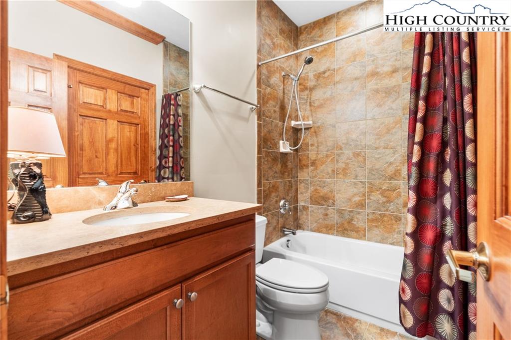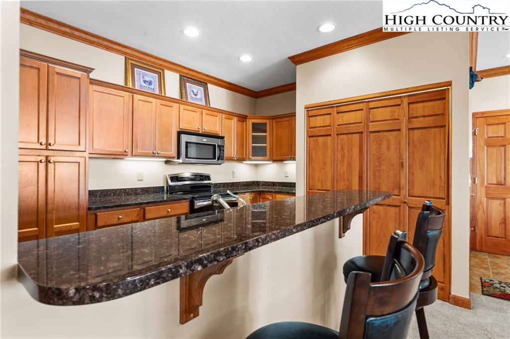 Beautiful condo located at The Reserve at Sugar Mountain with stunning Blue Ridge Mountain views! This luxurious condo features 2 bedrooms, 2 bathrooms, and 1,330 sq ft, and has been freshly painted in addition to brand-new carpet throughout. Inside, it features a large living room with a stacked-stone, gas-burning fireplace and sliding glass doors that access the covered back deck and help bring in the big mountain views. The open-concept layout ties right into the dining room and high-end kitchen, which includes granite countertops, bar-top seating, stainless steel appliances, and a washer & dryer located behind bi-fold doors. Wake up to beautiful views of the mountains through the primary bedroom’s sliding glass doors. The primary bedroom is plenty spacious and has its own en-suite bathroom with a deep soaking tub and extra-large shower. The second bedroom with a queen bed feels very private and features a bathroom that can be accessed via the bedroom or the hall. This unit is being offered fully furnished. Bonus: 3 parking spots located to the left of the building for minimal steps from car to entry. Never rented by its current owners, but The Reserve is an Airbnb/VRBO-friendly community for those who wish to rent when not in use. Just minutes from golf, tennis, skiing, shopping, outdoor recreation, parks, and dining that both Sugar Mountain and Banner Elk have to offer.