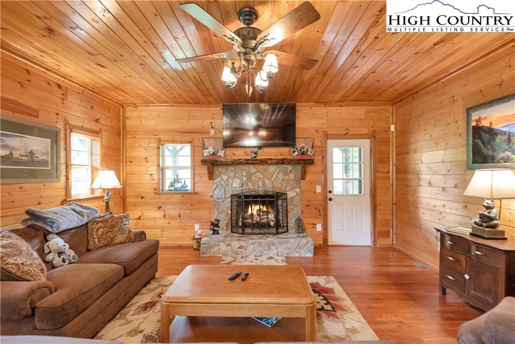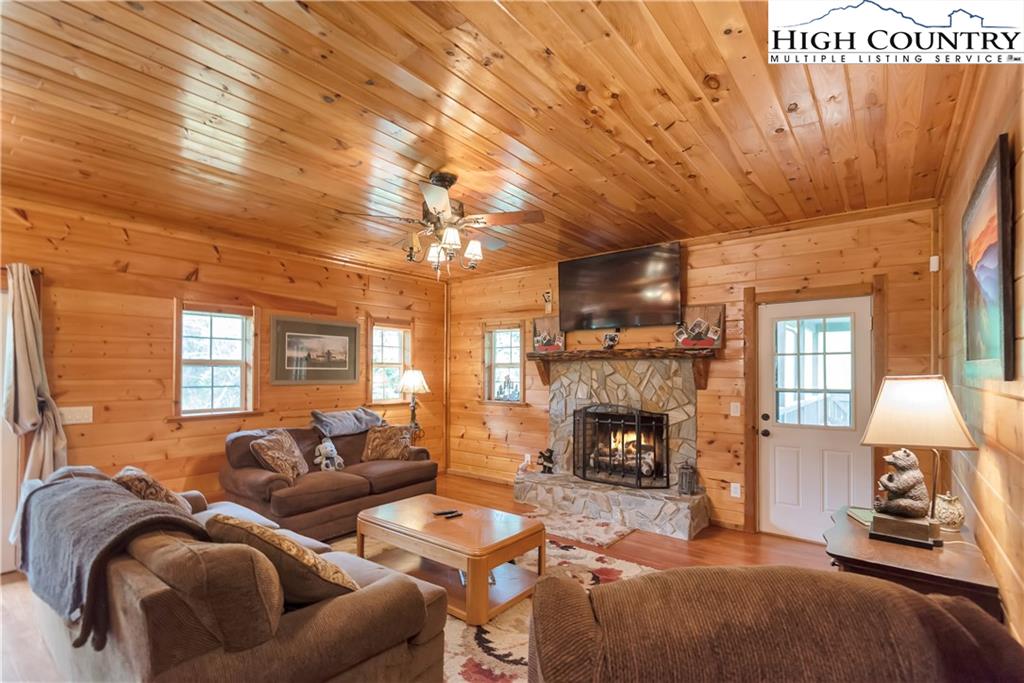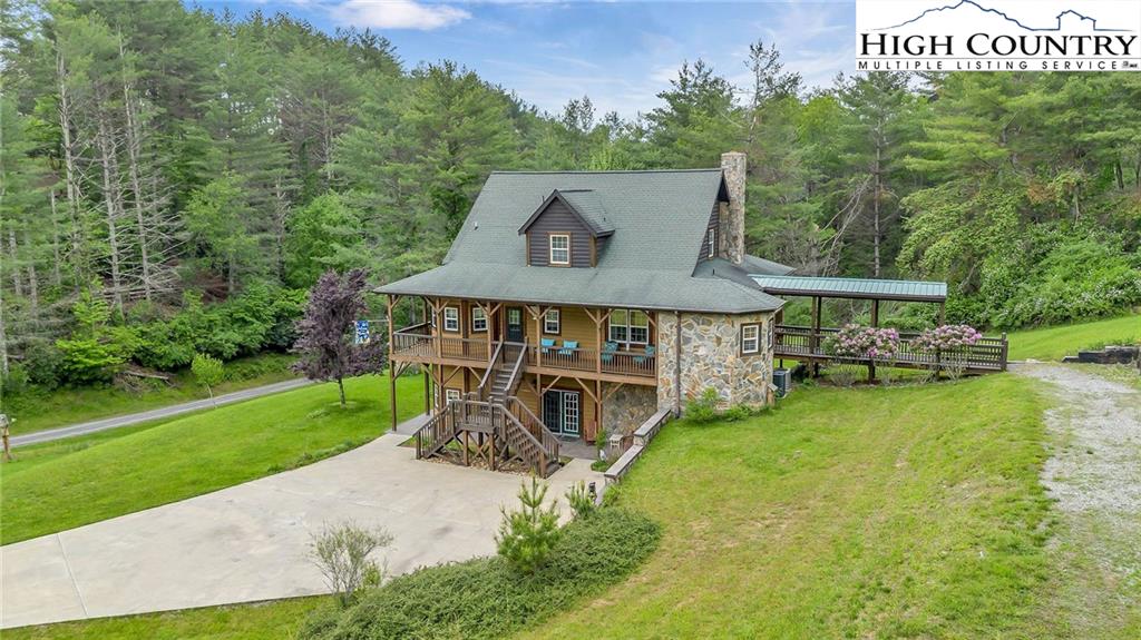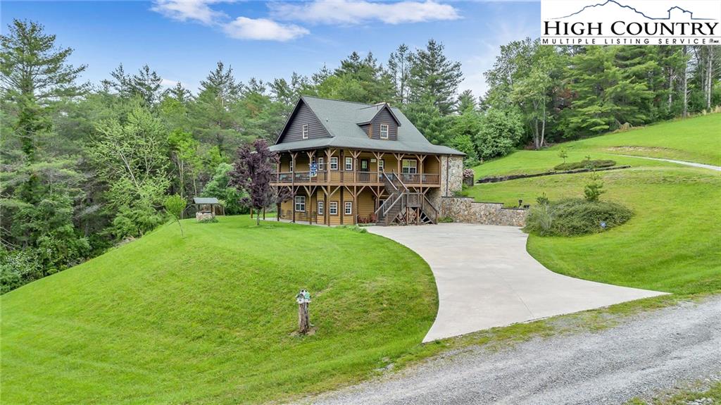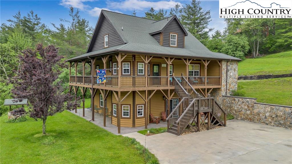 River meets mountain—and this is where your next chapter begins. Perfectly positioned in River Mountain Estates at the confluence of the North and South Forks of the New River, this spacious, turnkey log cabin delivers big views, bold vibes, and adventure right outside your door. Canoe, kayak, tube—your outfitter is literally next door, making this the ultimate basecamp for mountain living. Whether you're searching for a high-performing vacation rental, a weekend escape, or a forever cabin in the woods, this property delivers on every level. Arrival is effortless with dual access—pull in at the top for easy main-level entry or park below for direct access to the finished basement. Inside, the main level opens up to a spacious kitchen designed for gathering, featuring granite countertops, stainless appliances, abundant cabinetry, and a bright breakfast nook. Just off the kitchen, a large dining area sets the tone for long dinners and lively game nights. The great room anchors the space with a cozy gas fireplace and flows seamlessly onto a massive wraparound porch, where mountain air and the sound of the river create the perfect backdrop. The main-level primary suite offers a private retreat with a whirlpool tub, walk-in shower, and en-suite bath, while a half bath and laundry room provide added convenience for guests. Upstairs, a spacious loft offers flexible living—ideal for a media lounge, card table, or additional sleeping space—along with two generously sized bedrooms that share a full bath. The finished lower level takes things up a notch with a large bonus sleeping area, a private bath featuring an oversized walk-in shower, and a game room with walk-out access to a rare flat yard, perfect for kids, pets, and hook up already in place for your own private hot tub setup. The lifestyle here is just as compelling as the home itself, with community river access only a minute away for fishing, paddling, or simply unwinding by the water. Located just 25 minutes from West Jefferson and Sparta, you’ll enjoy the perfect balance of convenience and seclusion. Offered fully furnished, this is a true turnkey opportunity—ready to generate income or become your personal mountain escape from day one. Easy to show, impossible to forget, and ready for its next owner—this is more than a cabin, it’s your riverfront adventure lifestyle.