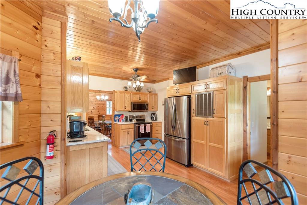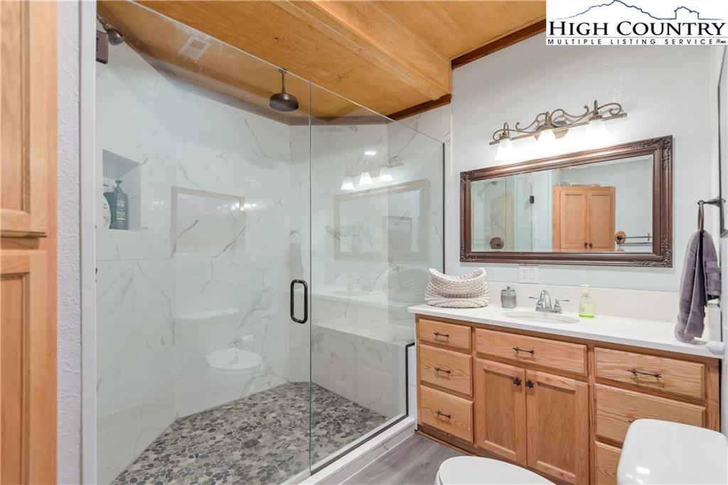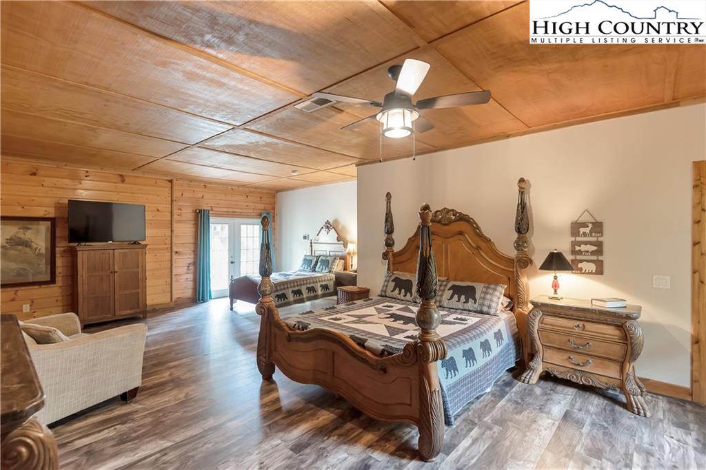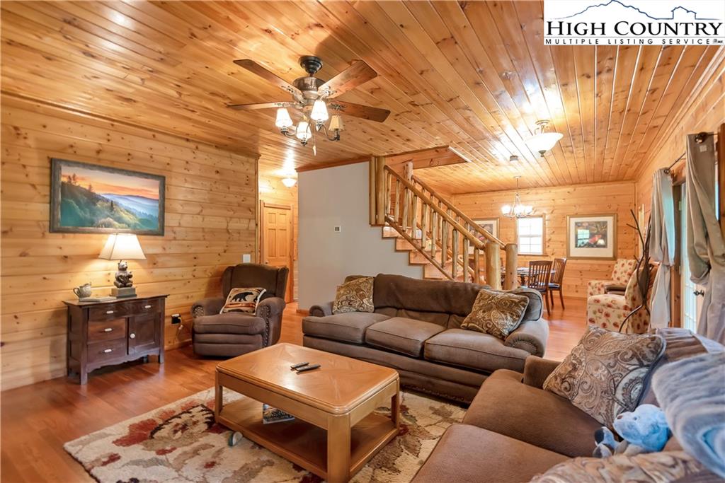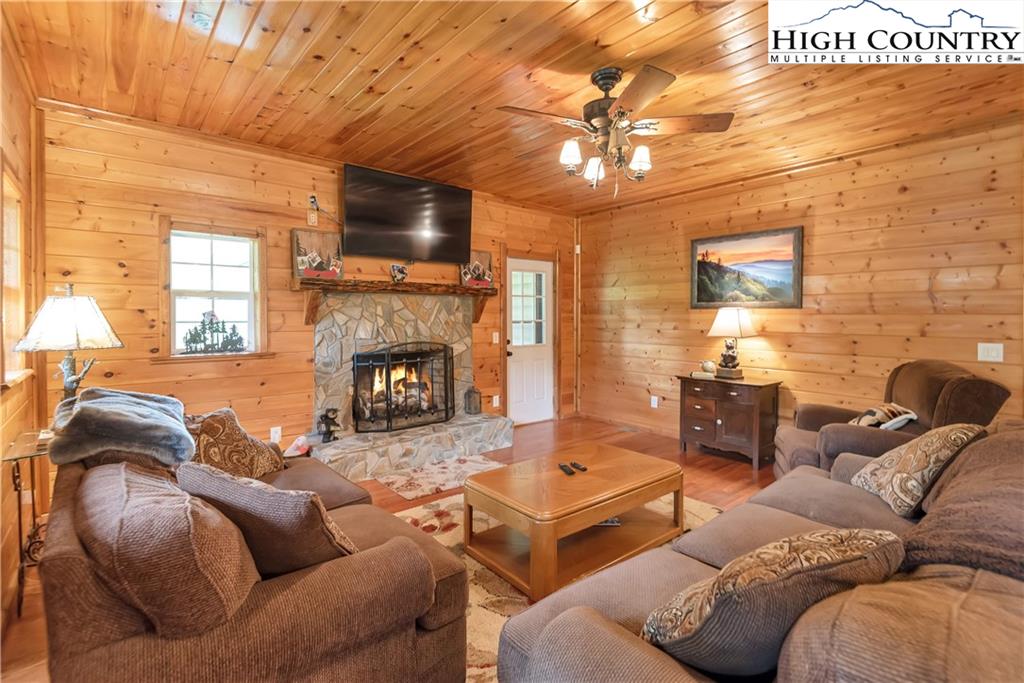 River meets mountain—and this is where your next chapter begins. Perfectly positioned in River Mountain Estates at the confluence of the North and South Forks of the New River, this spacious, turnkey log cabin delivers big views, bold vibes, and adventure right outside your door. Canoe, kayak, tube—your outfitter is literally next door, making this the ultimate basecamp for mountain living. Whether you're searching for a high-performing vacation rental, a weekend escape, or a forever cabin in the woods, this property delivers on every level. Arrival is effortless with dual access—pull in at the top for easy main-level entry or park below for direct access to the finished basement. Inside, the main level opens up to a spacious kitchen designed for gathering, featuring granite countertops, stainless appliances, abundant cabinetry, and a bright breakfast nook. Just off the kitchen, a large dining area sets the tone for long dinners and lively game nights. The great room anchors the space with a cozy gas fireplace and flows seamlessly onto a massive wraparound porch, where mountain air and the sound of the river create the perfect backdrop. The main-level primary suite offers a private retreat with a whirlpool tub, walk-in shower, and en-suite bath, while a half bath and laundry room provide added convenience for guests. Upstairs, a spacious loft offers flexible living—ideal for a media lounge, card table, or additional sleeping space—along with two generously sized bedrooms that share a full bath. The finished lower level takes things up a notch with a large bonus sleeping area, a private bath featuring an oversized walk-in shower, and a game room with walk-out access to a rare flat yard, perfect for kids, pets, and hook up already in place for your own private hot tub setup. The lifestyle here is just as compelling as the home itself, with community river access only a minute away for fishing, paddling, or simply unwinding by the water. Located just 25 minutes from West Jefferson and Sparta, you’ll enjoy the perfect balance of convenience and seclusion. Offered fully furnished, this is a true turnkey opportunity—ready to generate income or become your personal mountain escape from day one. Easy to show, impossible to forget, and ready for its next owner—this is more than a cabin, it’s your riverfront adventure lifestyle.